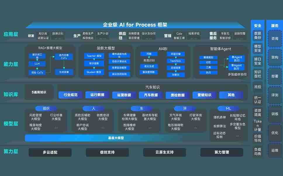 端到端的一站式AI工作空间深度融合了从企业战略规划到日常经营的全流程业务板块,,,定向解决车企内部领域多、、部门多、、链条长、、场景碎片化等难题,,,,支持车企快速构建以AI为核心的生产力写作体系,,,,实现任务执行与AI能力的无缝集成与交互